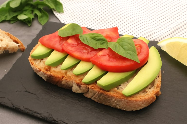 Pan tostado a la plancha con aguacate y tomate