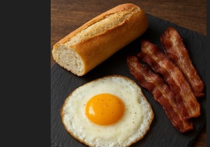 Pan tostado con bacon y huevo